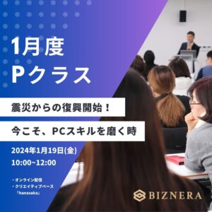 2024年1月度Pクラスのご案内 –震災からの復興開始! 今こそ、PCスキルを磨く時